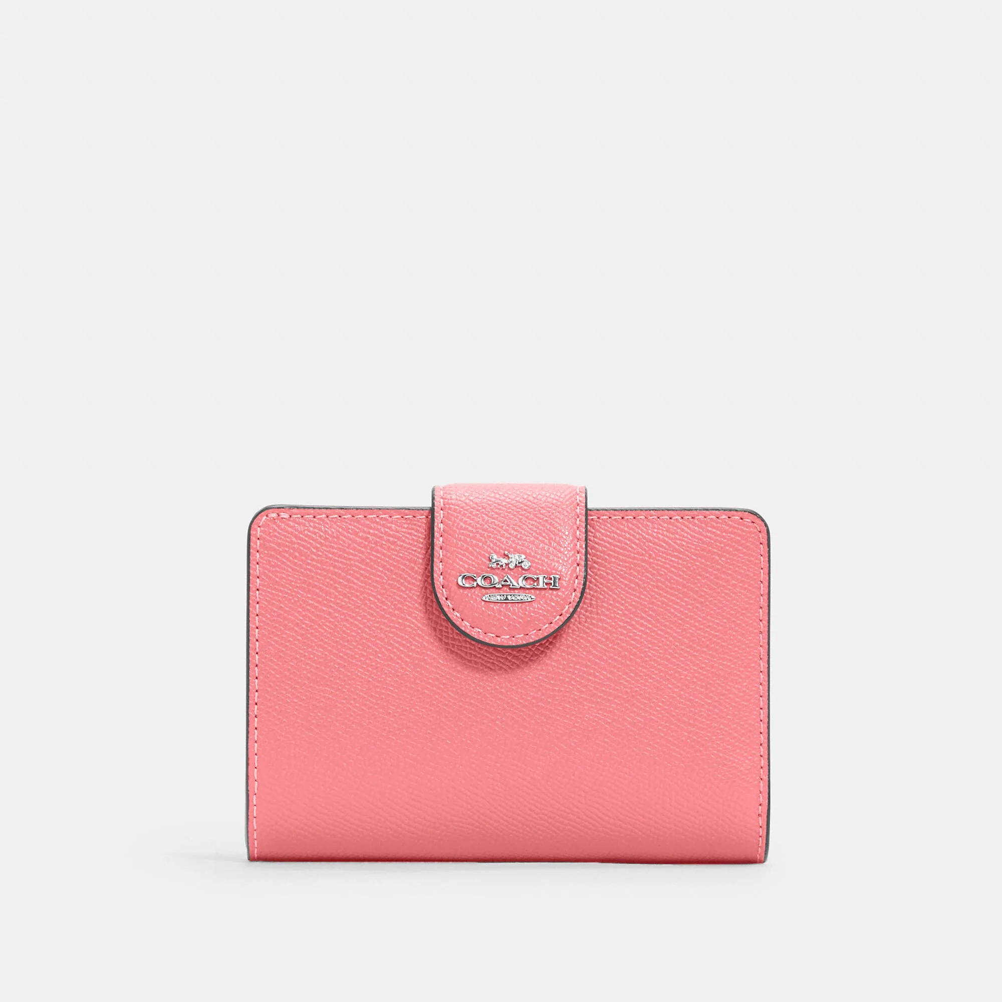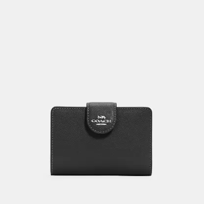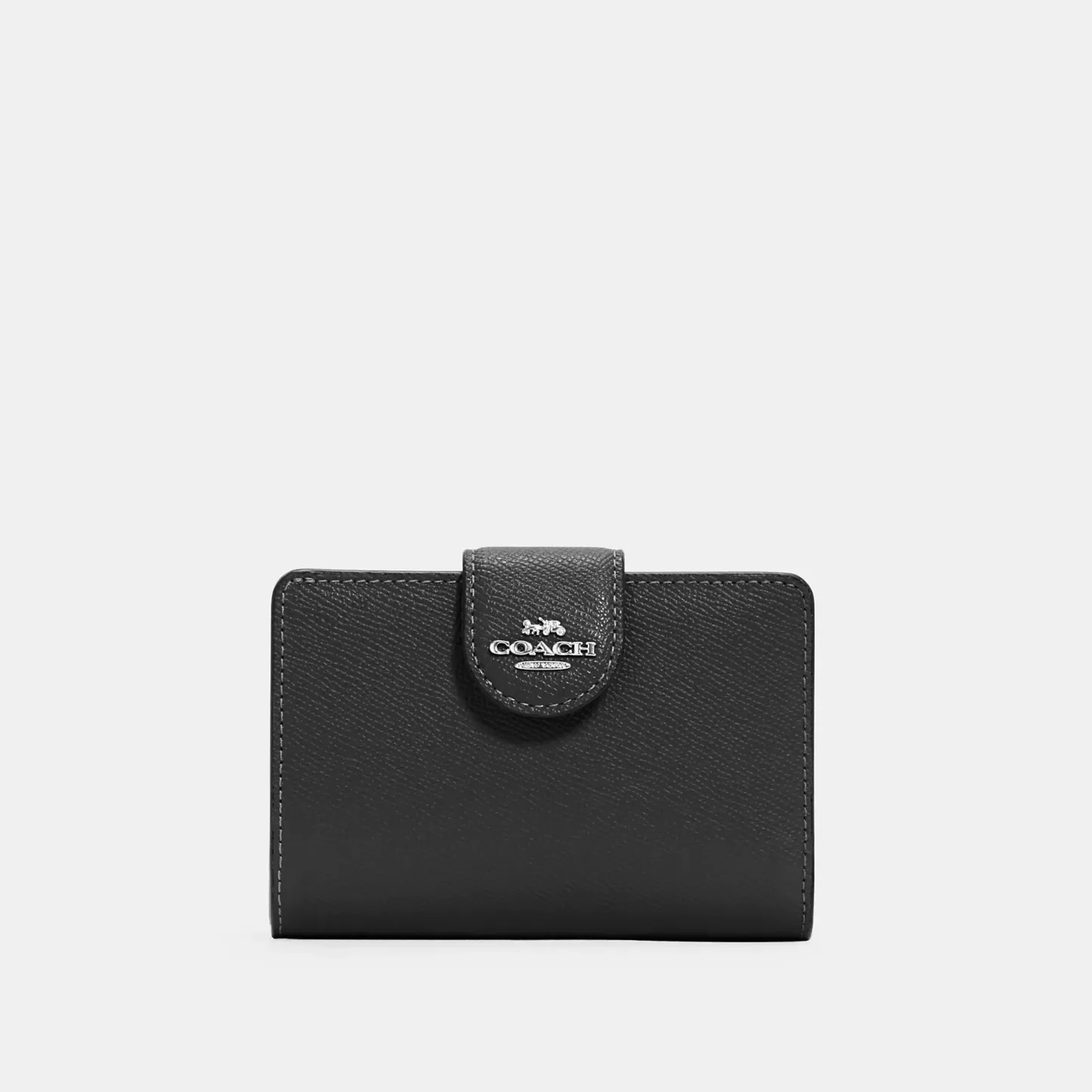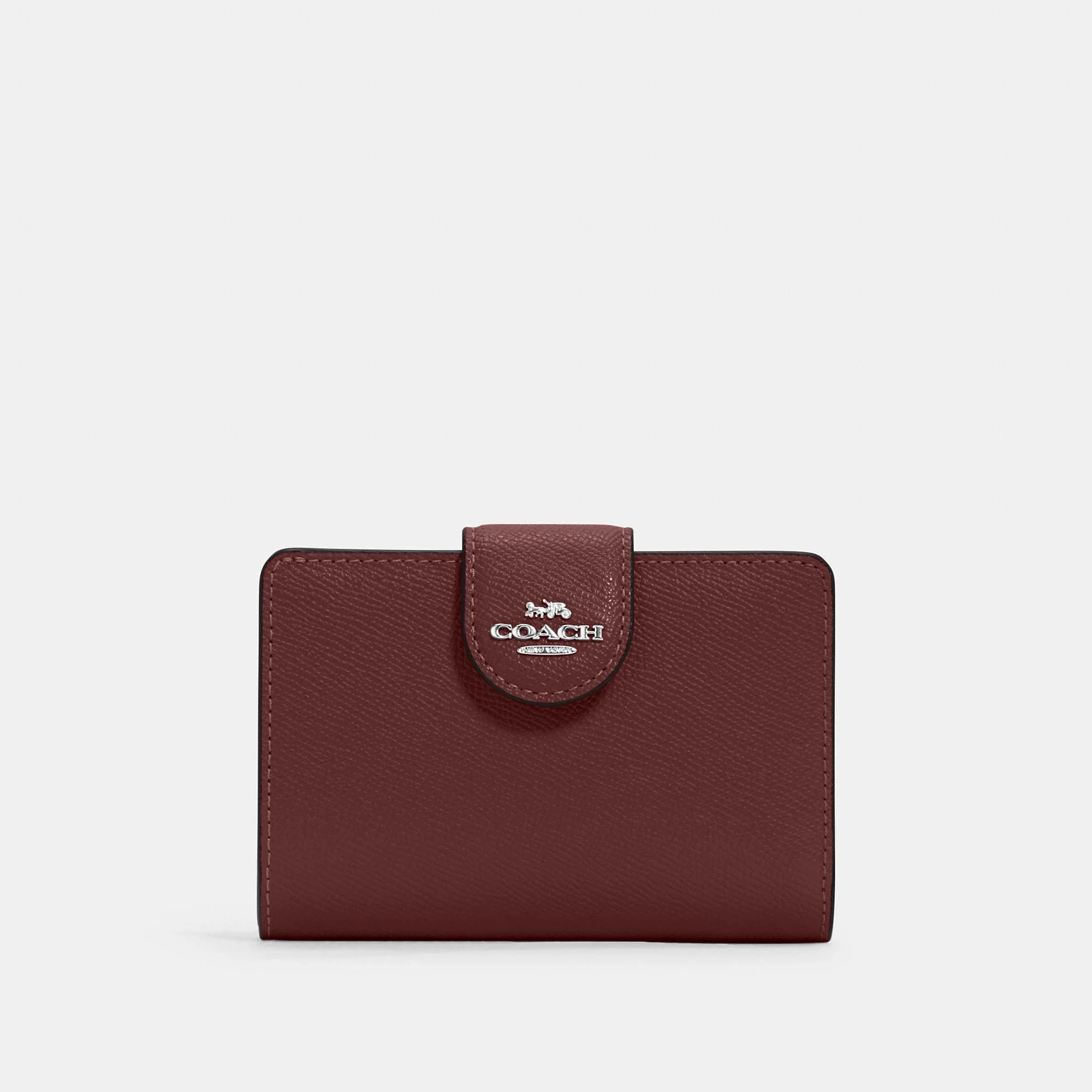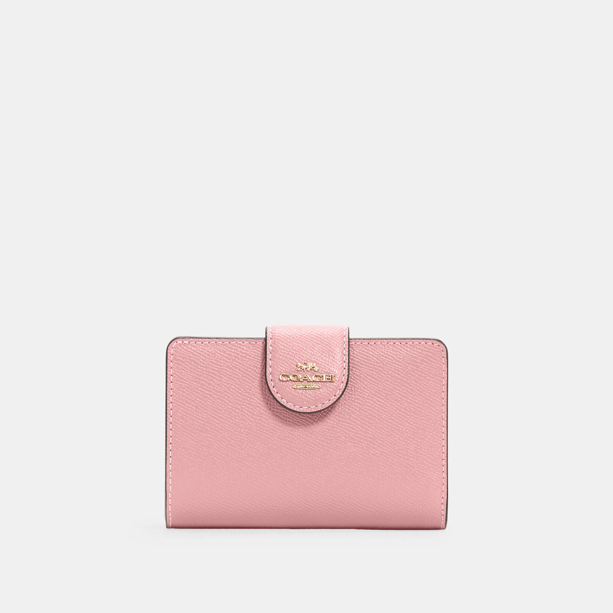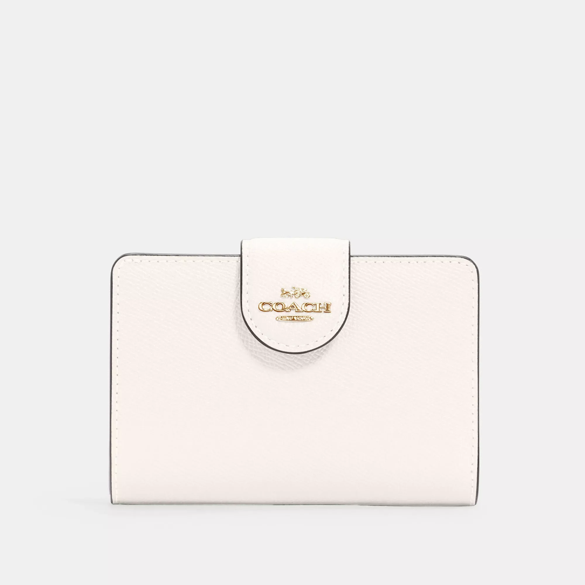 Crossgrain leather Seven credit card slots Bill compartment ID window Snap closure Zip coin pocket 5 (L) x 3 1/2 (H) x 1/2 (W) Style No. 6390 | Outlet Medium Corner Zip Wallet - Gold/Midnight