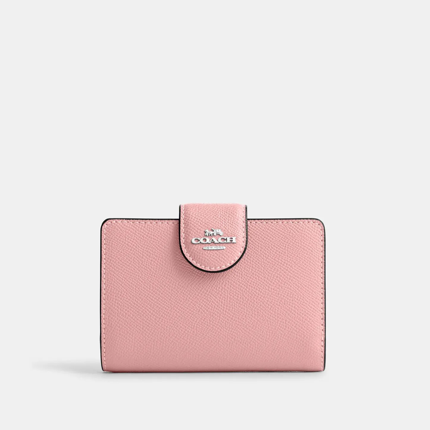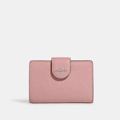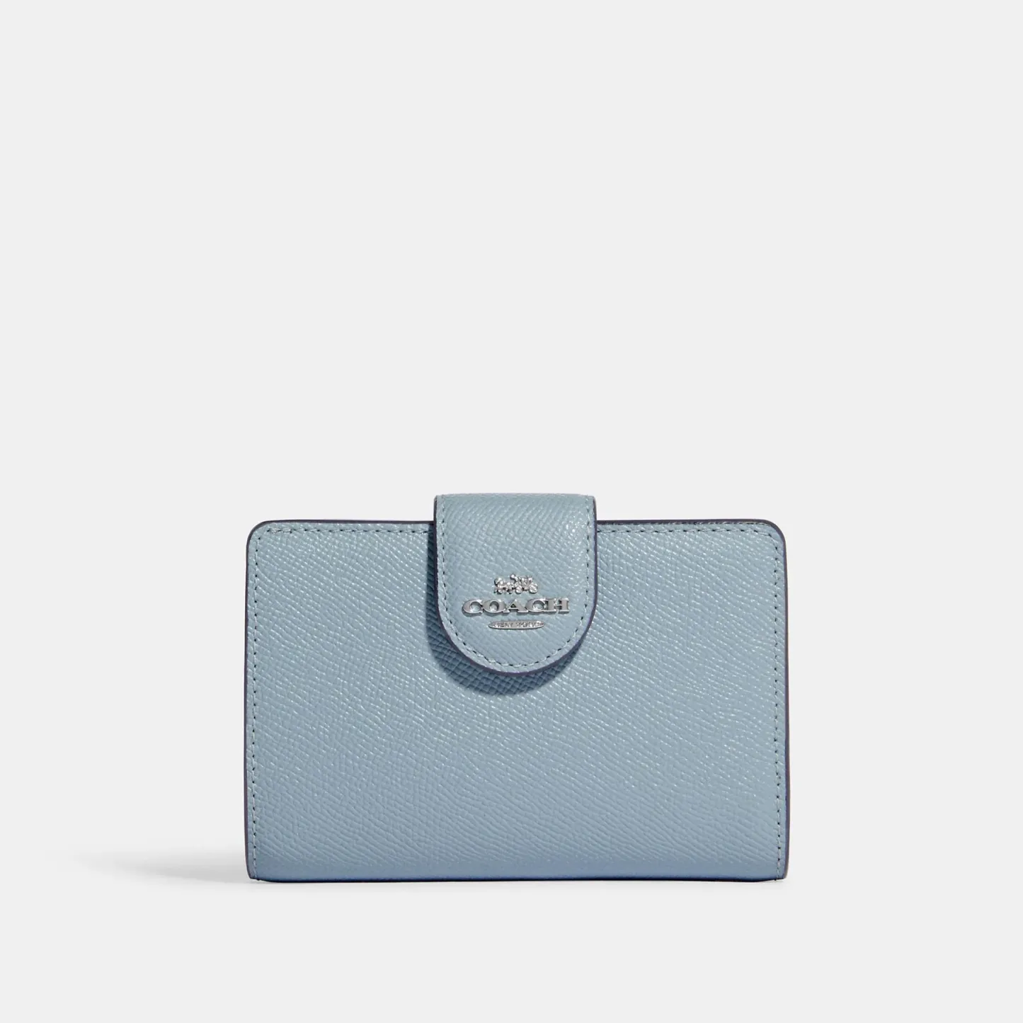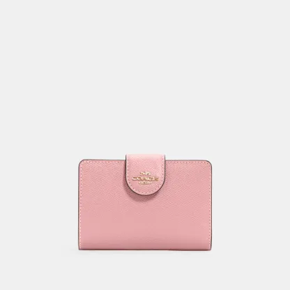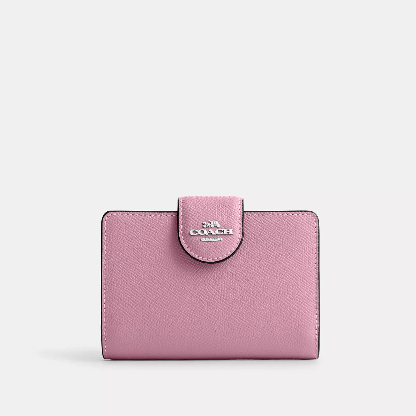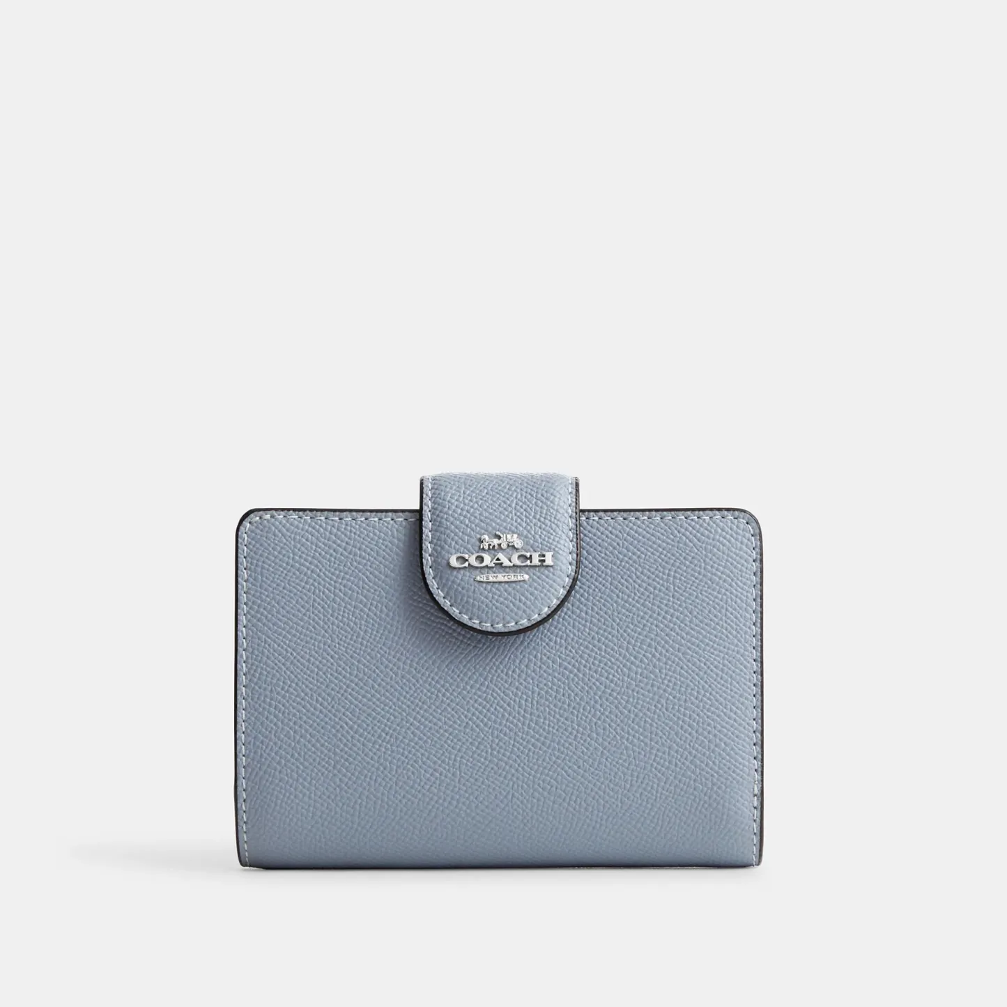 Crossgrain leather Seven credit card slots Bill compartment ID window Snap closure Zip coin pocket 5 (L) x 3 1/2 (H) x 1/2 (W) Style No. 6390 | Outlet Medium Corner Zip Wallet - Gold/Midnight