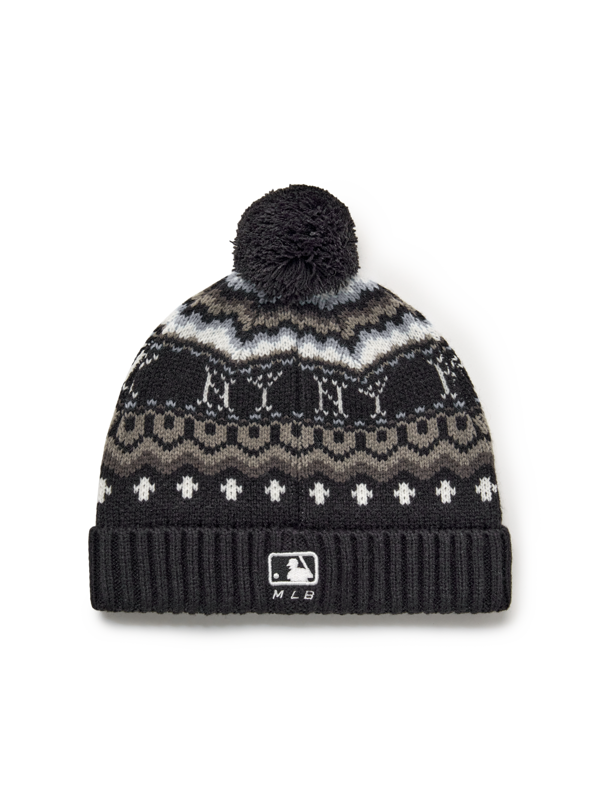 NORDIC PATTERN POMPOM BEANIE