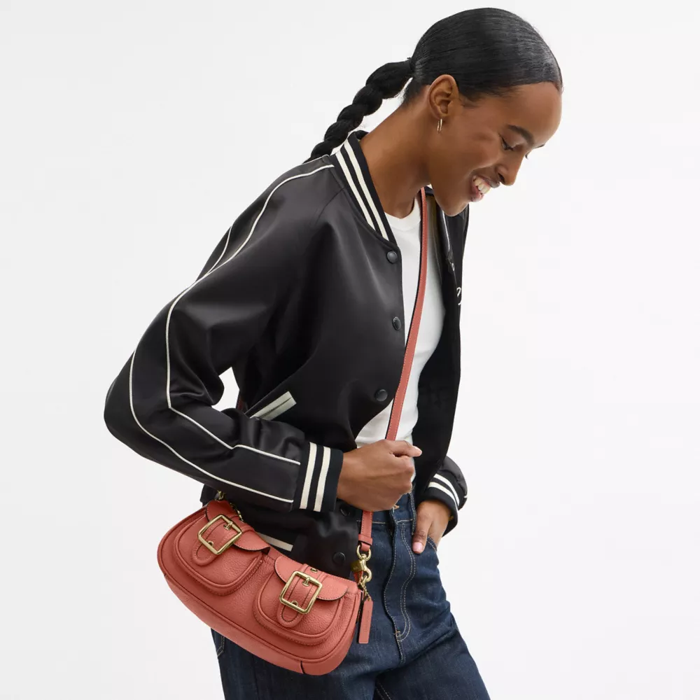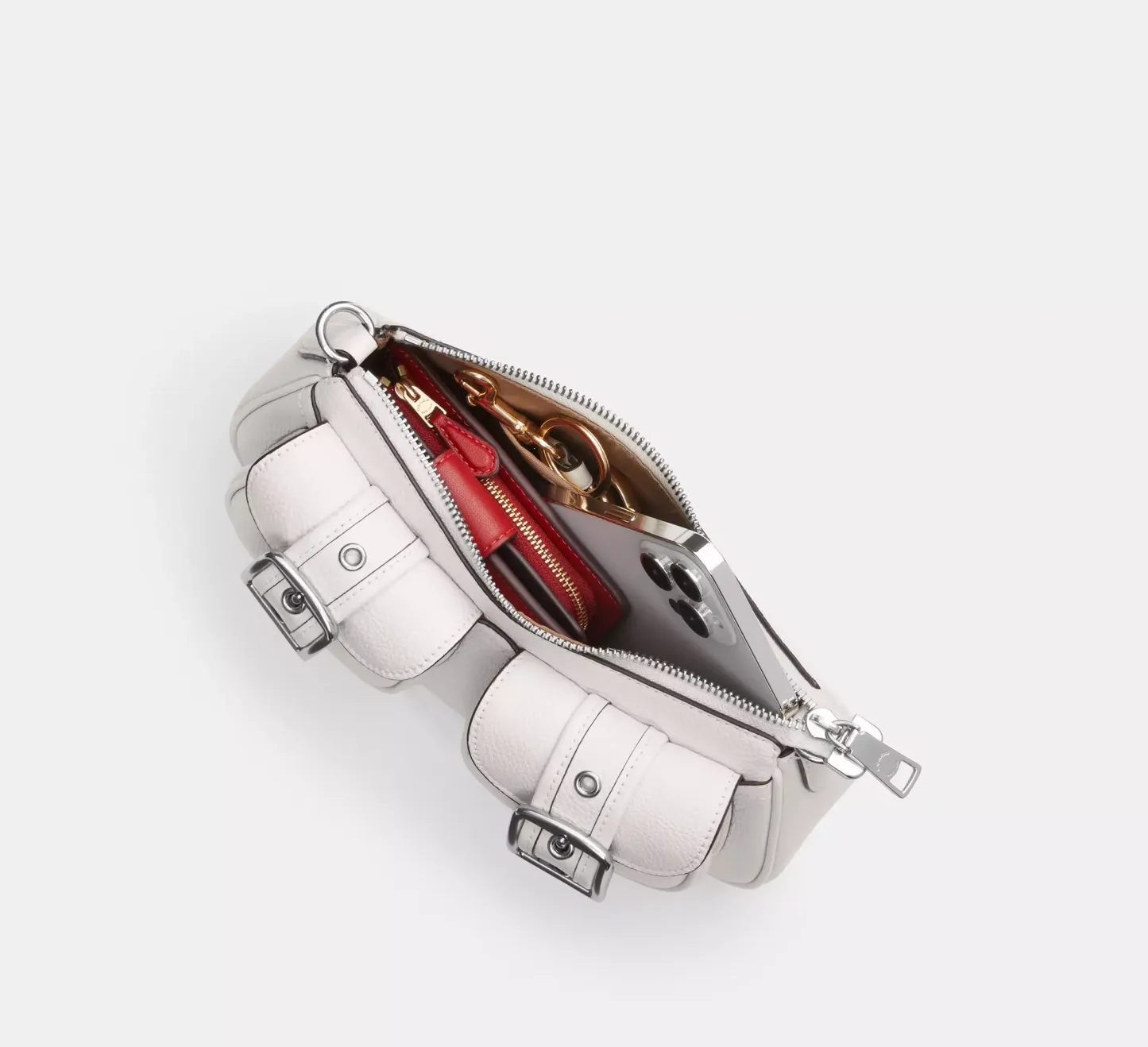 - Detachable strap with 23.25" drop for shoulder or crossbody wear