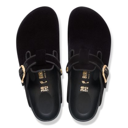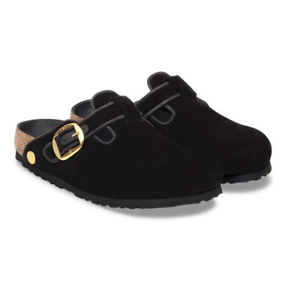 Your special occasion clogs. Smooth, velvety fabric gives the Boston clog's iconic design a subtle shimmer for the season along with a shiny, oversized buckle. The style is grounded in our original contoured footbed, lined with ultra-smooth leather for a luxe feel every time.
