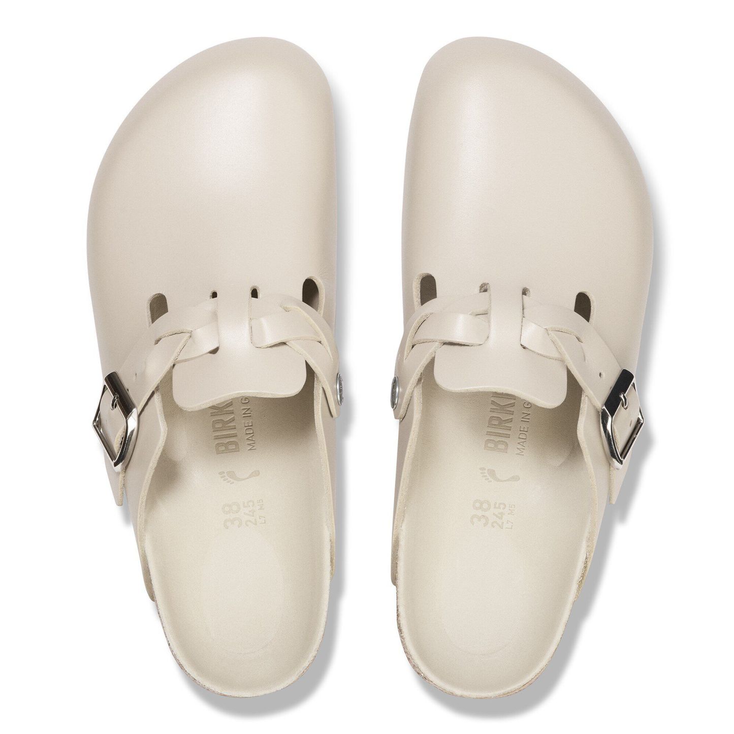 The BIRKENSTOCK Boston is a veritable classic that can easily be worn all year round. It has a legendary status thanks to its sophisticated, individually adjustable design. Here, the model comes with a special detail: the straps have a braided pattern, making them the perfect match for fashionable boho styles. The semi-exquisite footbed is fully lined with soft piumato leather, making it exceptionally comfortable. The upper is made from especially fine and high-quality Amalfi leather.