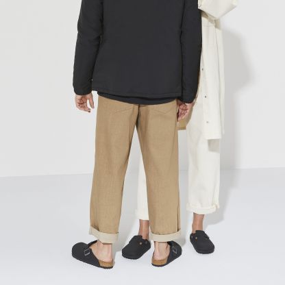 The signature slip-on clog from BIRKENSTOCK - the Boston. A casual-wear staple that is perfect all year round with a simple, adjustable design and contoured cork footbed that forms to the shape of your foot. The color-coordinated outsole rounds off the shoe’s look of sophistication. Available in vegan materials including an upper made from the skin-friendly, hard-wearing synthetic material, Birkibuc.