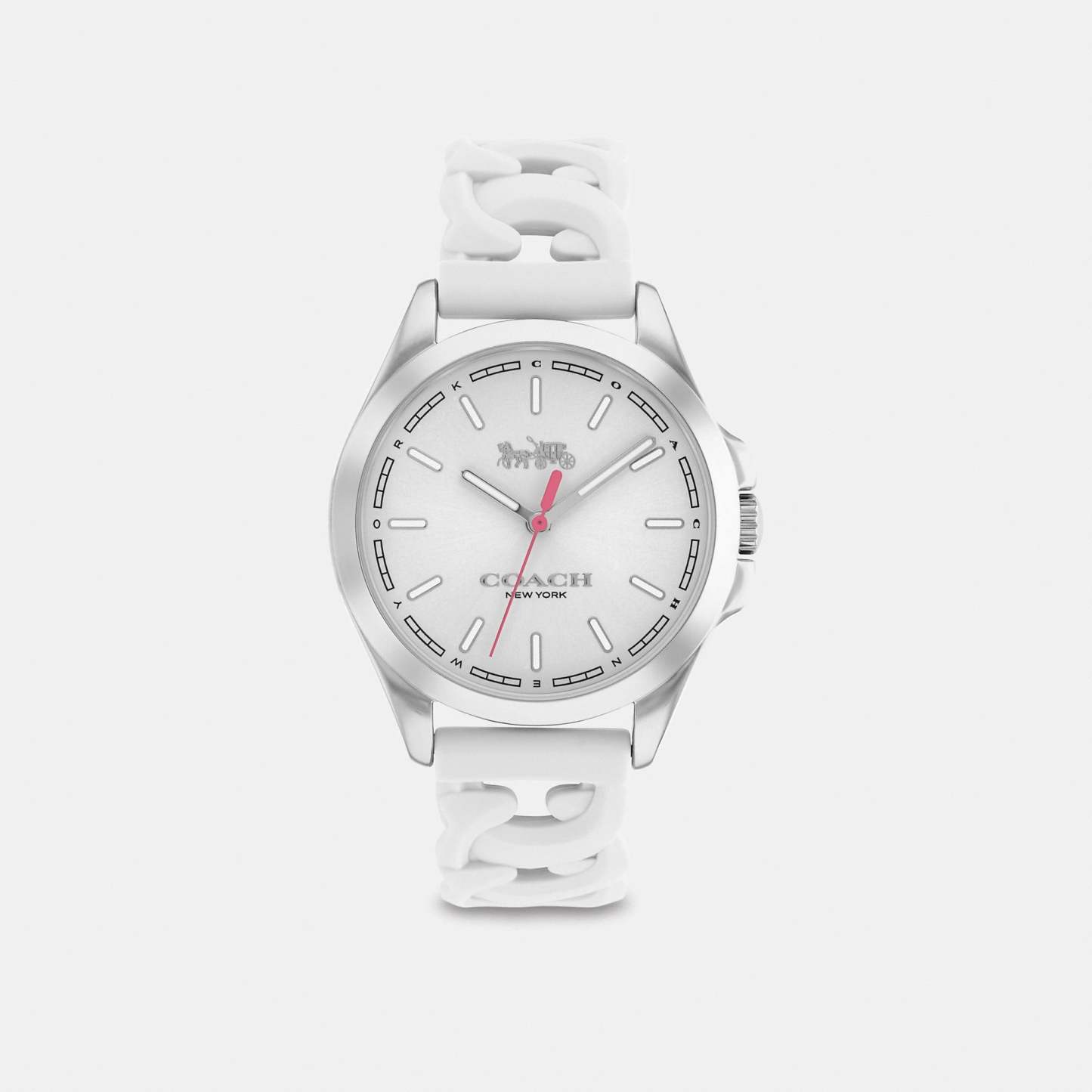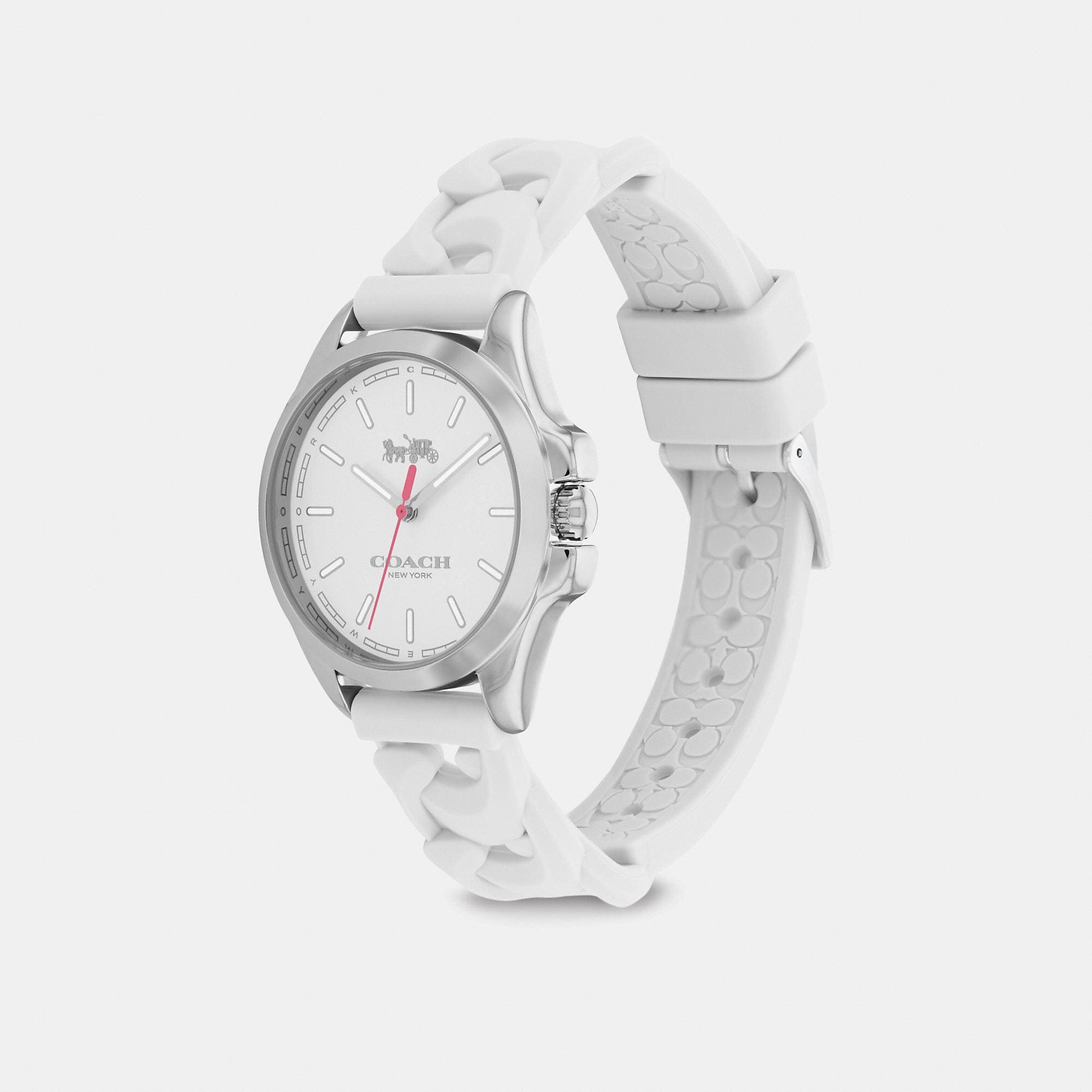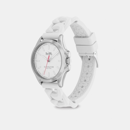 Stainless steel case and Signature rubber strap Approx. case diameter - 34mm Mineral crystal Quartz movement Buckle closure Water-resistant to 99 feet Style No. C9578 | Outlet Libby Watch, 34 Mm - White