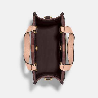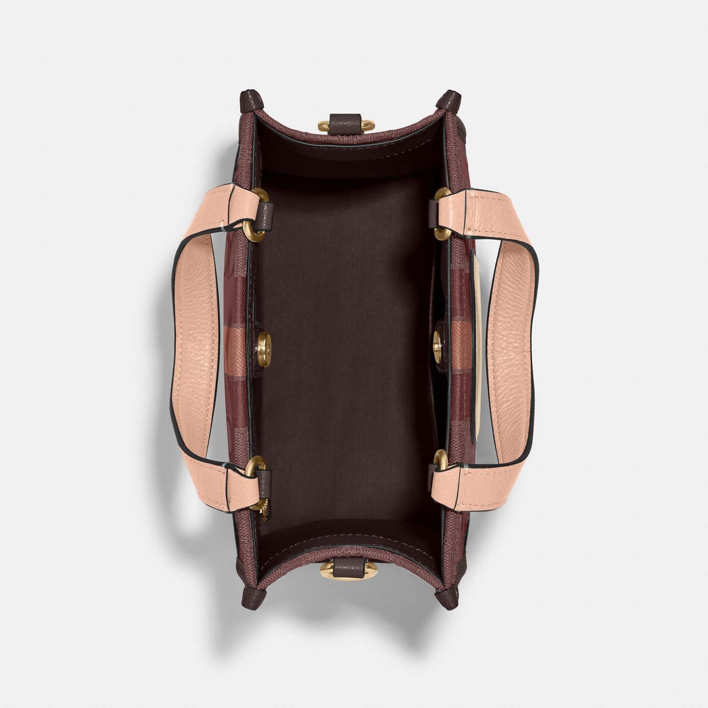 Signature jacquard and refined pebble leather Inside zip and multifunction pockets Snap closure fabric lining Handles with 4 1/4 drop Detachable strap with 22 1/2 drop for shoulder or crossbody wear Four protective feet at base 8 3/4 (L) x 7 3/4 (H) x 4 1/4 (W) This piece is crafted of our Signature jacquard made from a blend of organic cotton and recycled polyester Style No. C8417 | Outlet Dempsey Tote 22 In Signature Jacquard With Stripe And Patch - Red