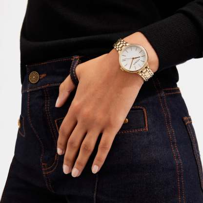 Gold tone case and bracelet Approx. case diameter - 34mm Mineral crystal Quartz movement Deployment closure Water-resistant to 99 feet Style No. CE752 | Outlet Josie Watch, 34 Mm - Yellow