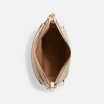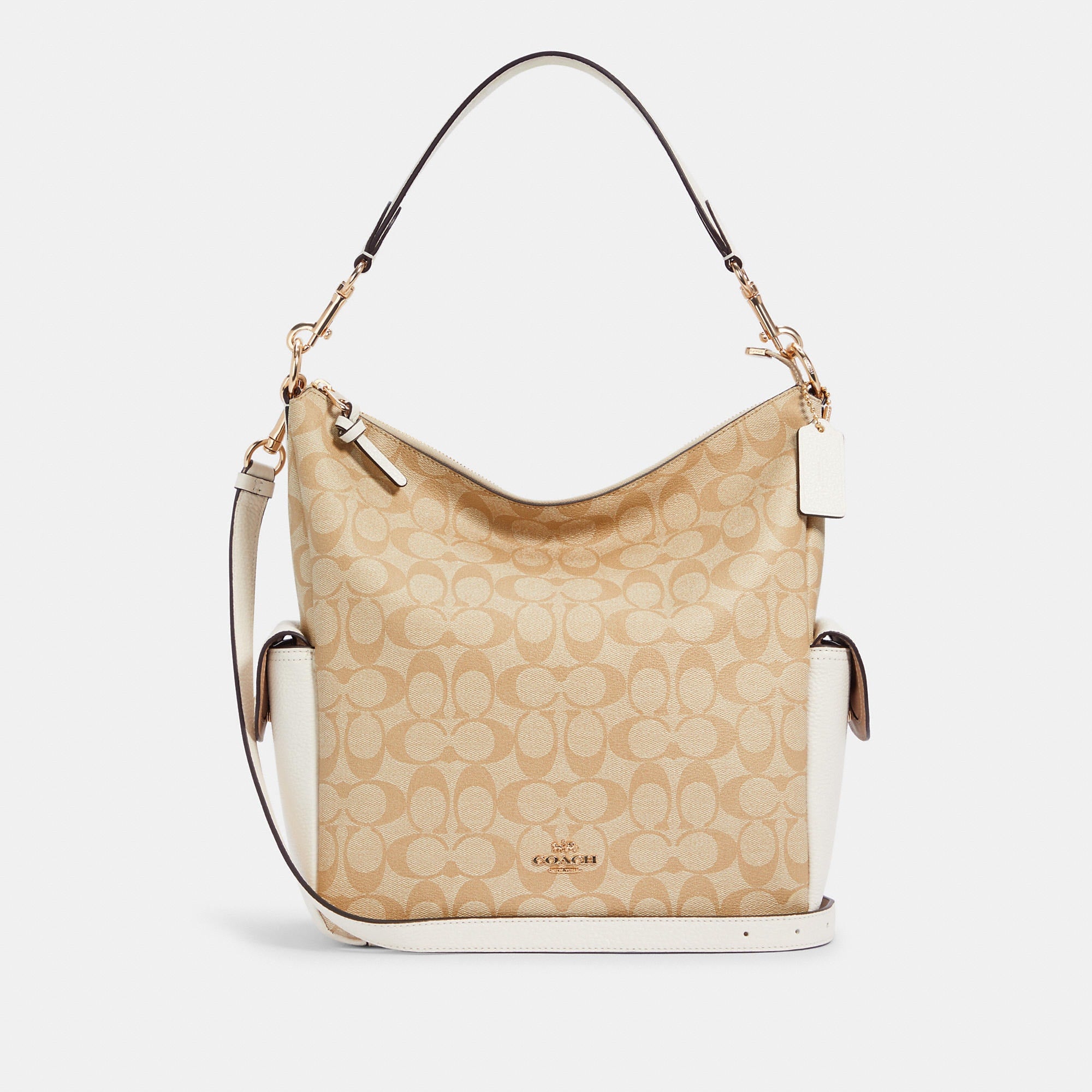 Signature coated canvas and refined pebble leather Inside zip pocket Zip-top closure fabric lining Detachable handle with 7 drop Outside zip and snap pockets Detachable strap with 20 3/4 drop for shoulder or crossbody wear 10 3/4 (L) x 11 3/4 (H) x 5 1/4 (W) Style No. C1523 | Outlet Pennie Shoulder Bag In Signature Canvas - Beige