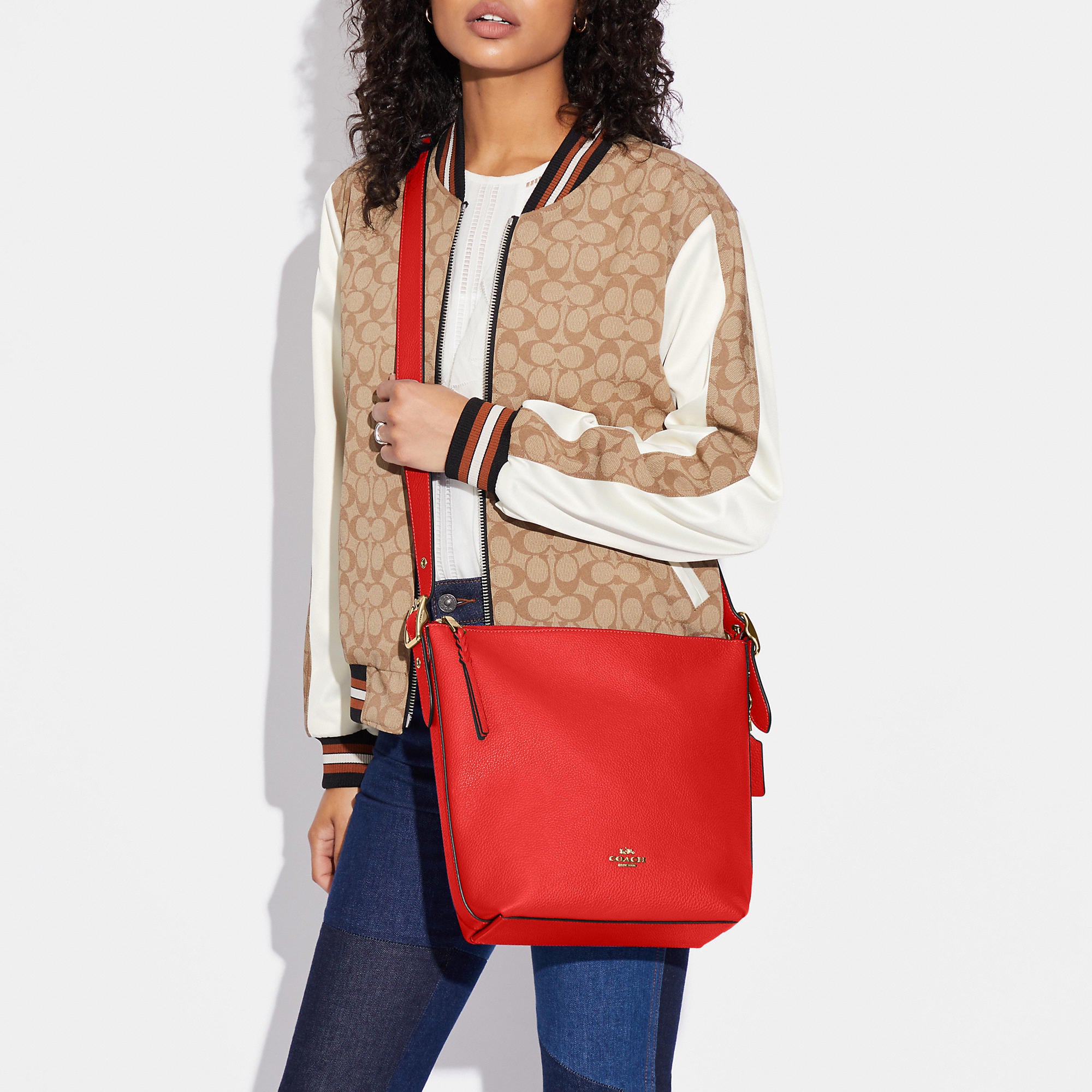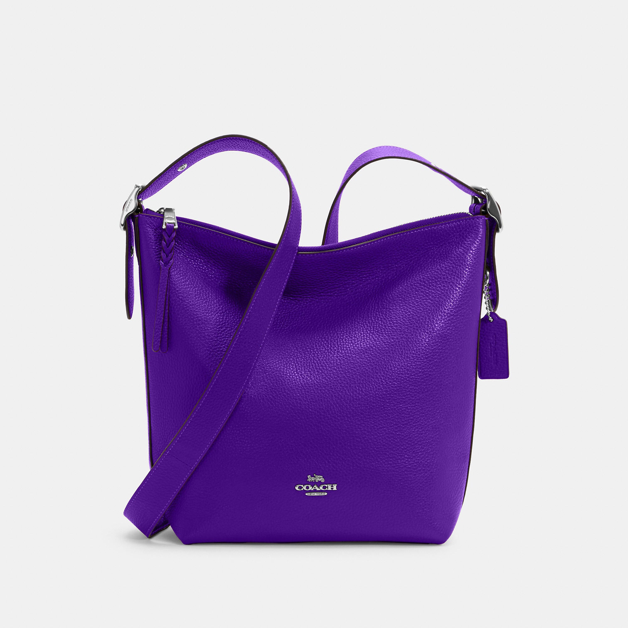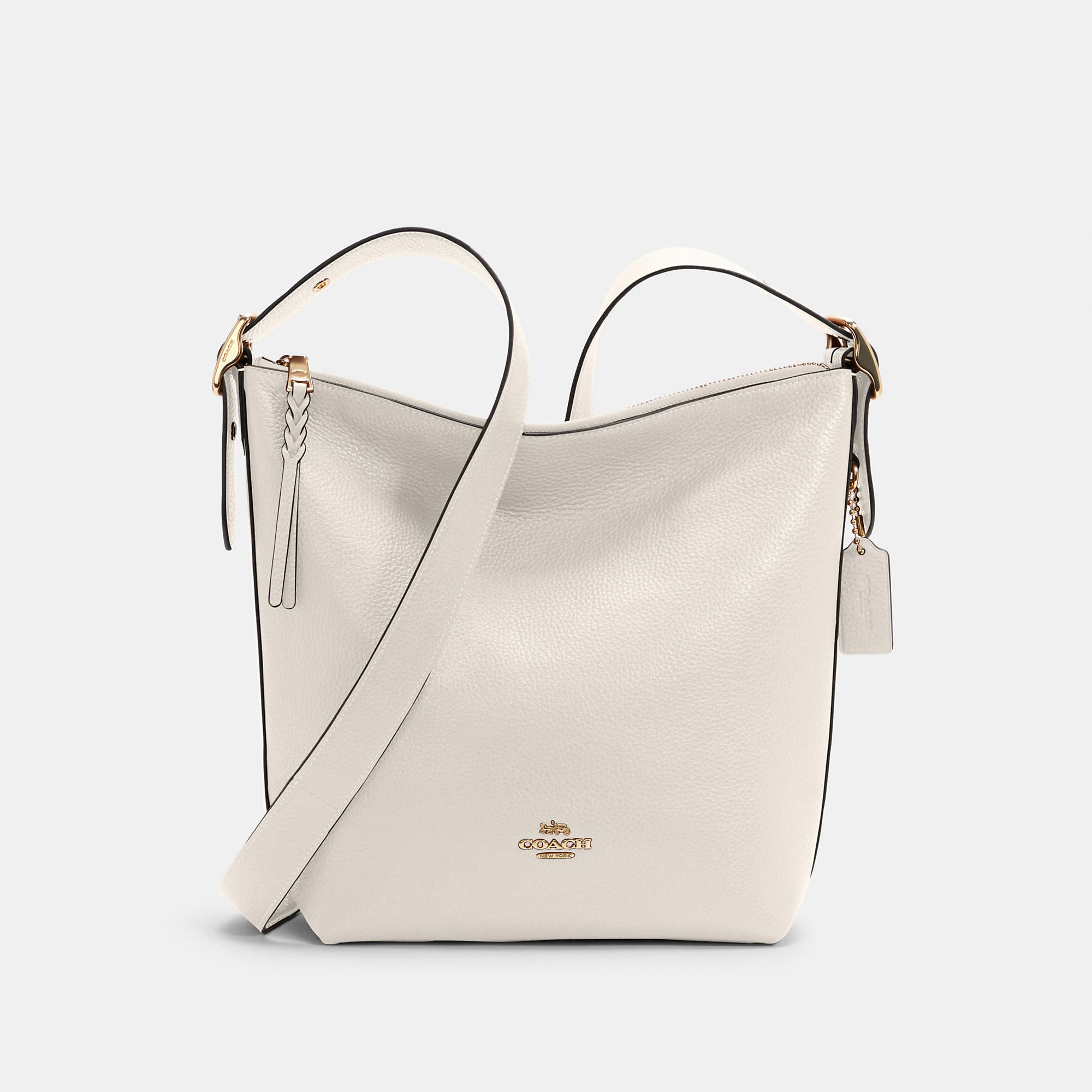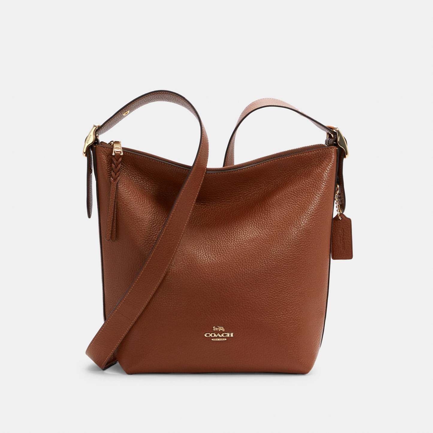 Refined pebble leather Inside zip cell phone and multifunction pockets Zip-top closure fabric lining Outside zip pocket Adjustable strap with 21 drop for shoulder or crossbody wear 9 (L) x 11 1/4 (H) x 4 1/2 (W) Style No. C2818