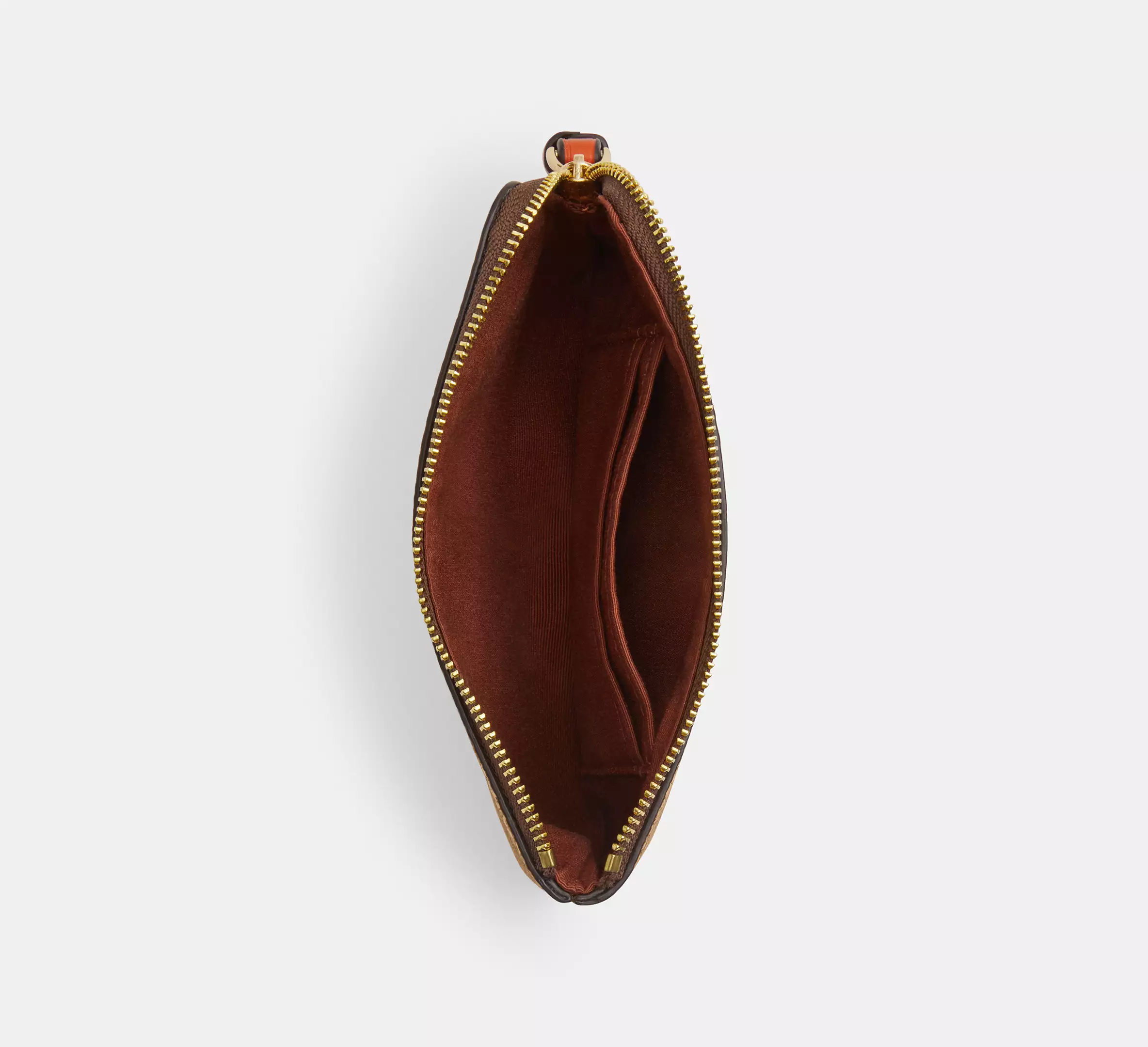 Corner Zip Wristlet In Signature Canvas With Orange Print