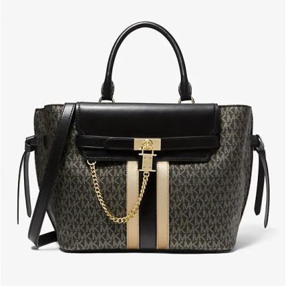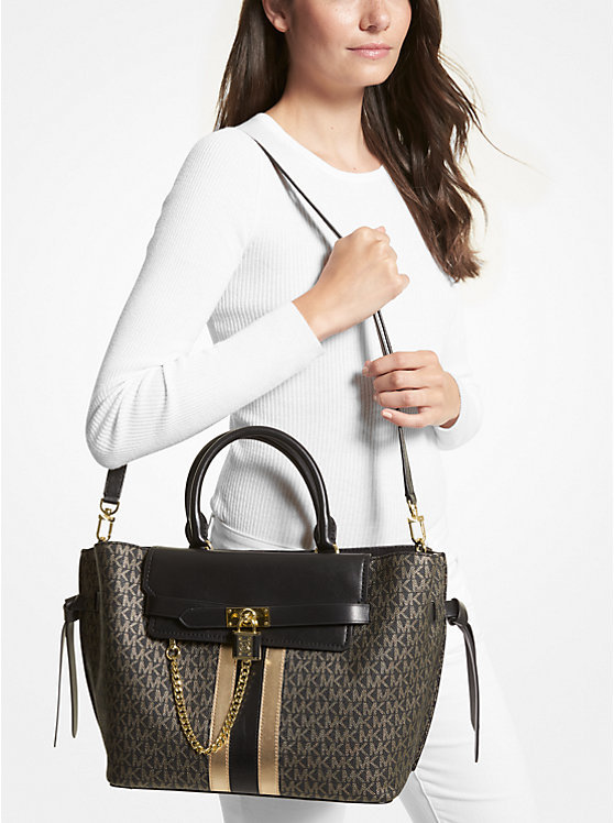 Hamilton Legacy Large Metallic Logo Stripe Belted Satchel