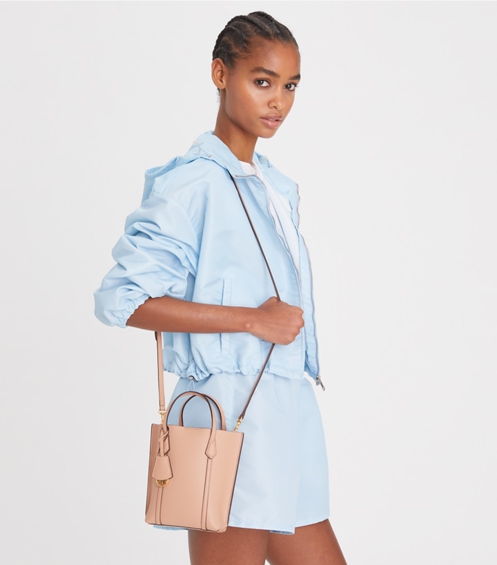 Minimal hardware on a new streamlined silhouette. Designed to hold the essentials, our Mini Perry Tote Bag is made of rich Italian pebbled leather that is bonded inside