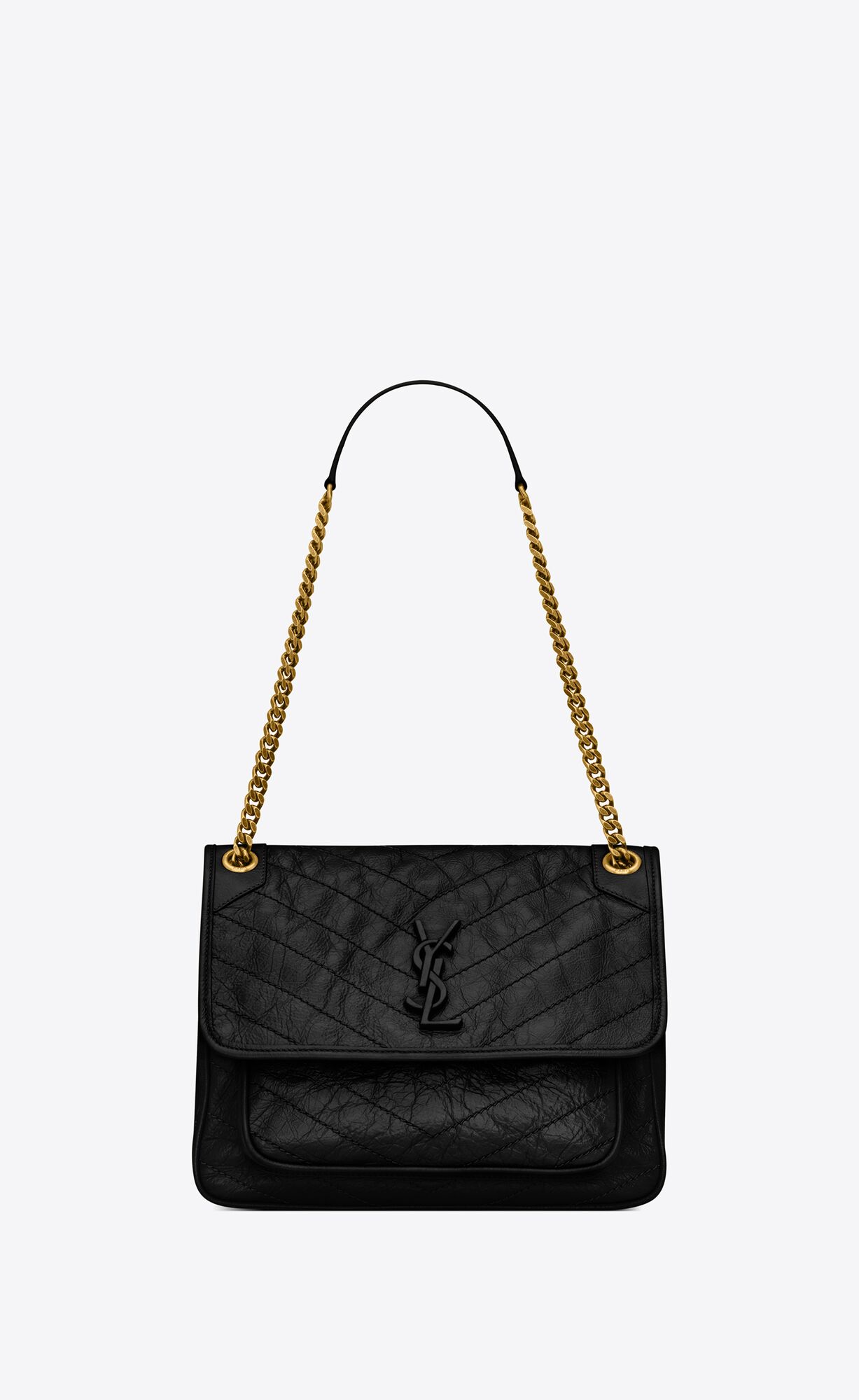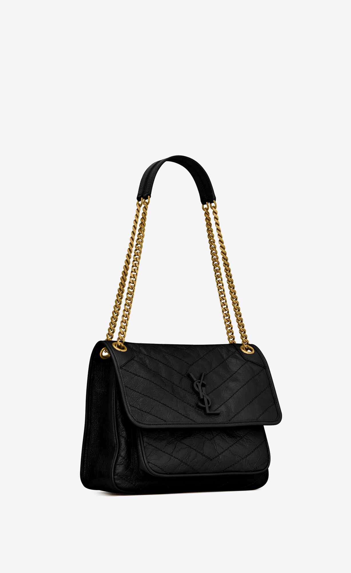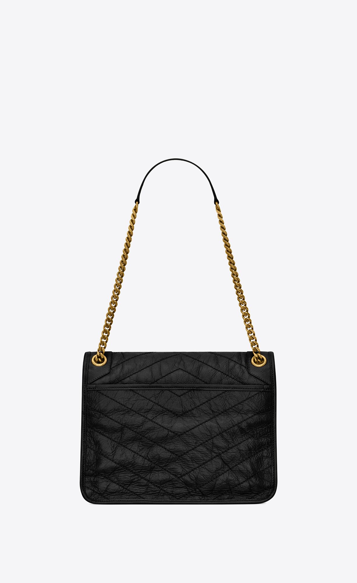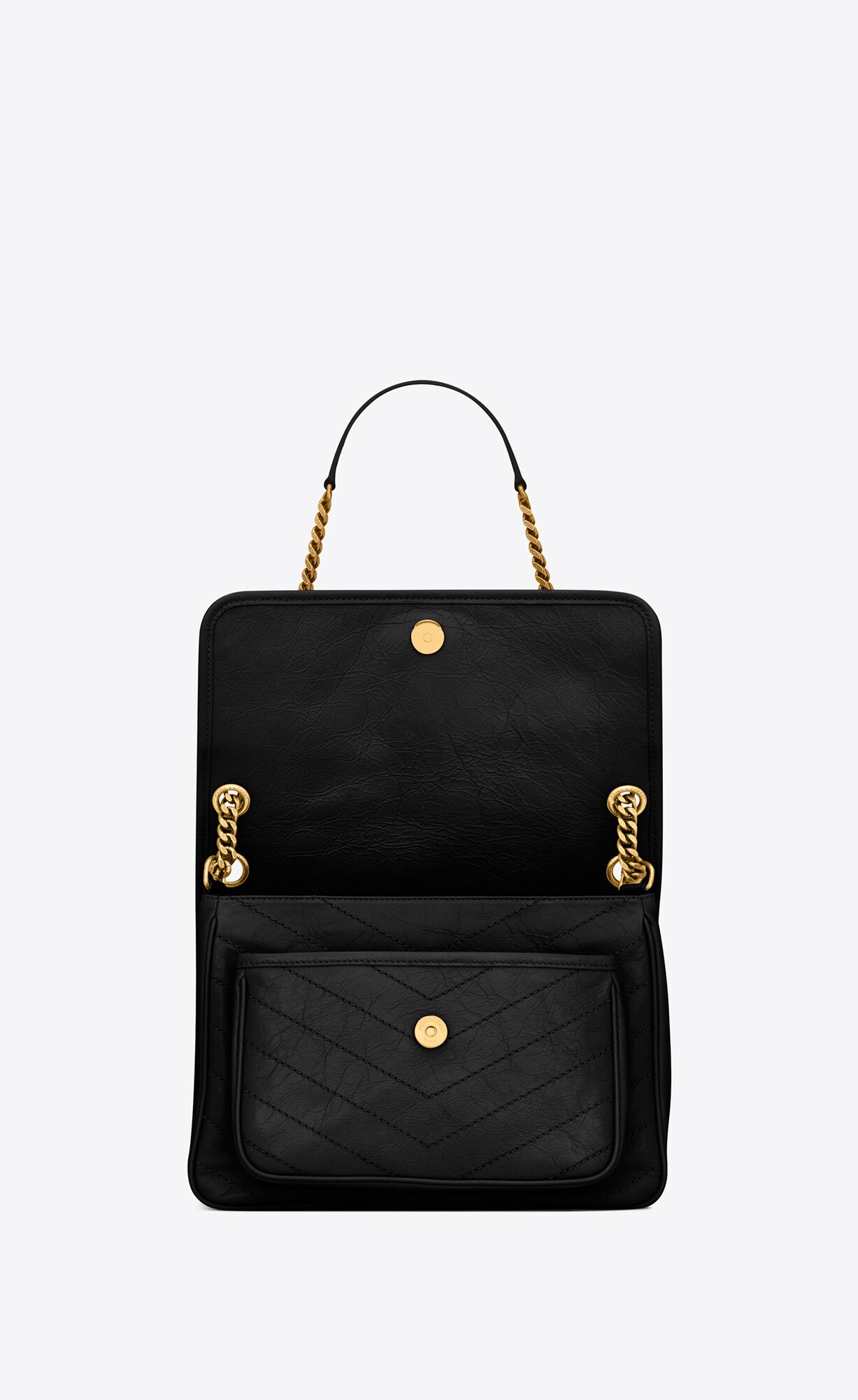 NIKI MEDIUM CHAIN BAG IN CRINKLED VINTAGE LEATHER-NOIR