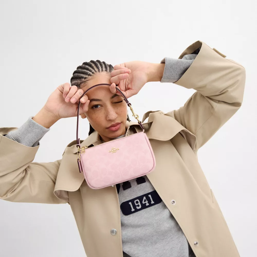The Nolita 19 is your go-to, mini shoulder bag. Crafted of Signature coated canvas, it is durable and compact. With enough space to carry your keys, card case and iPhone (up to 16 Pro Max), this women's shoulder bag keeps your essentials close at hand. Featuring two credit card slots for added organization, the Nolita can be customized with bag charms or a different strap for a personal touch. Wear it on your shoulder to complete your outfit or carry it as a wristlet when you're on the go. No matter the occasion, this mini canvas shoulder bag will complement your look.
