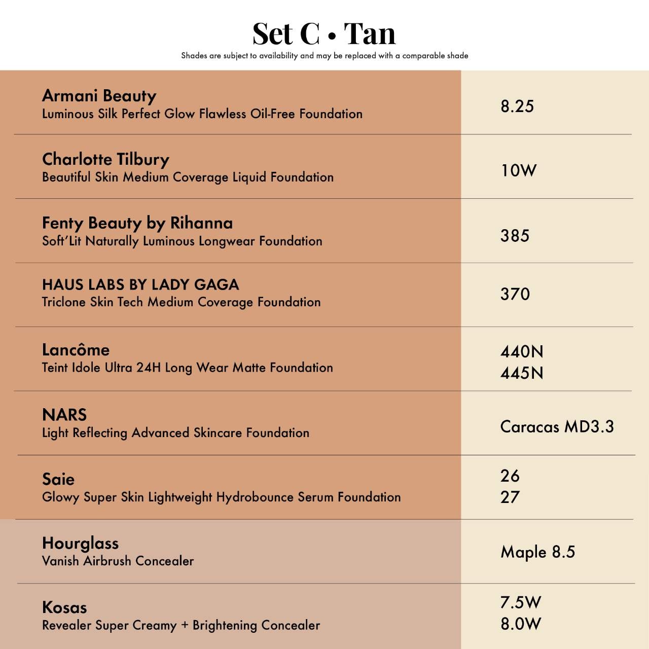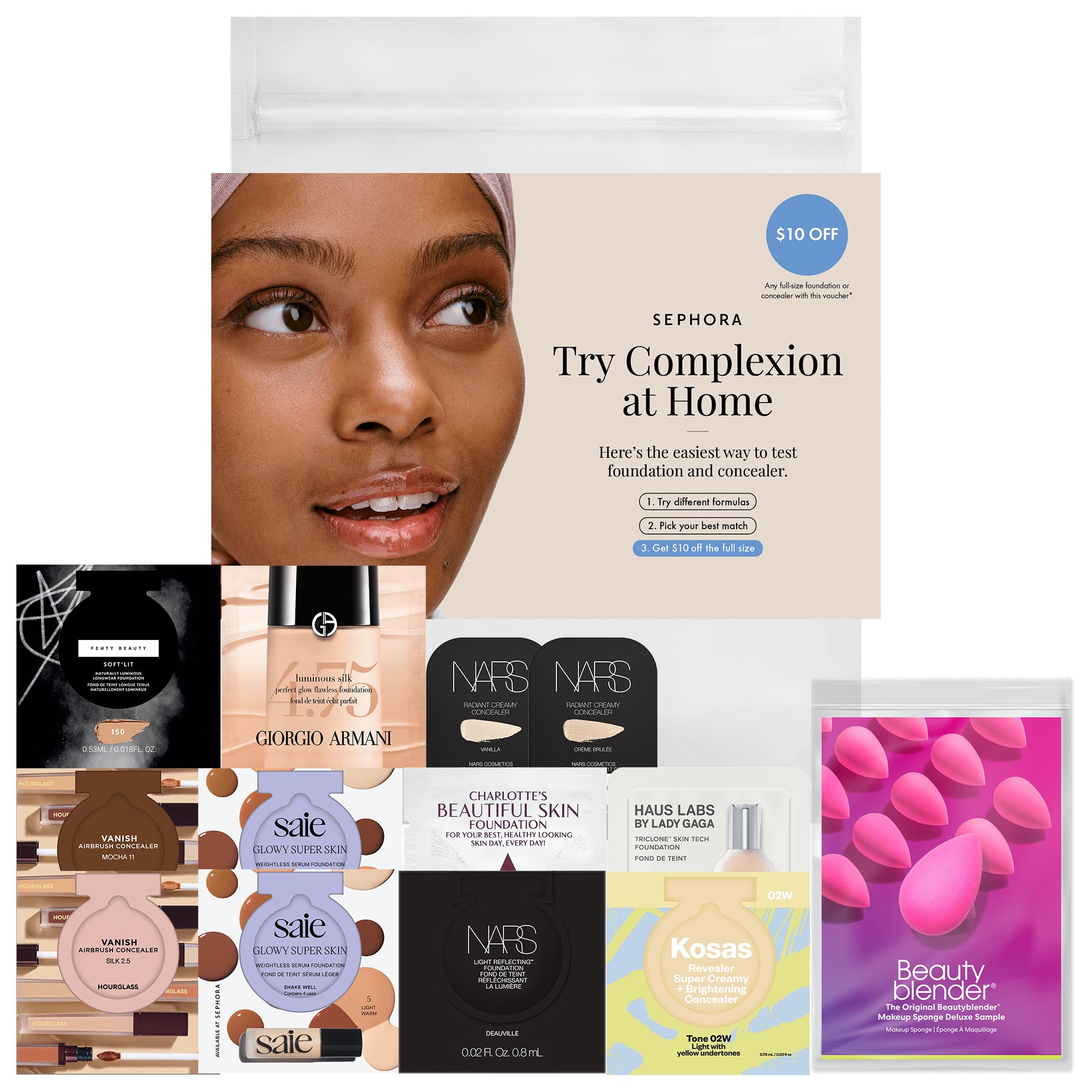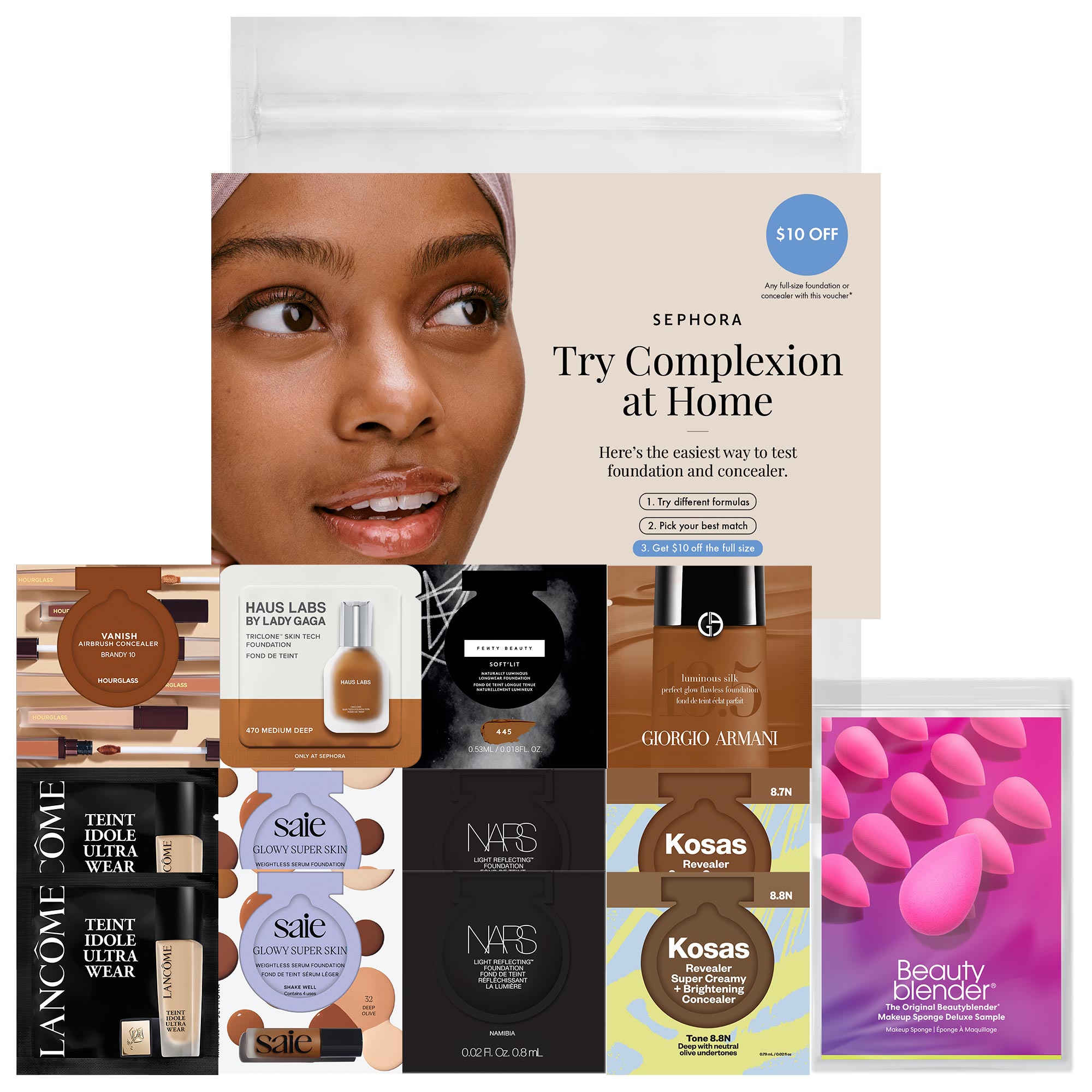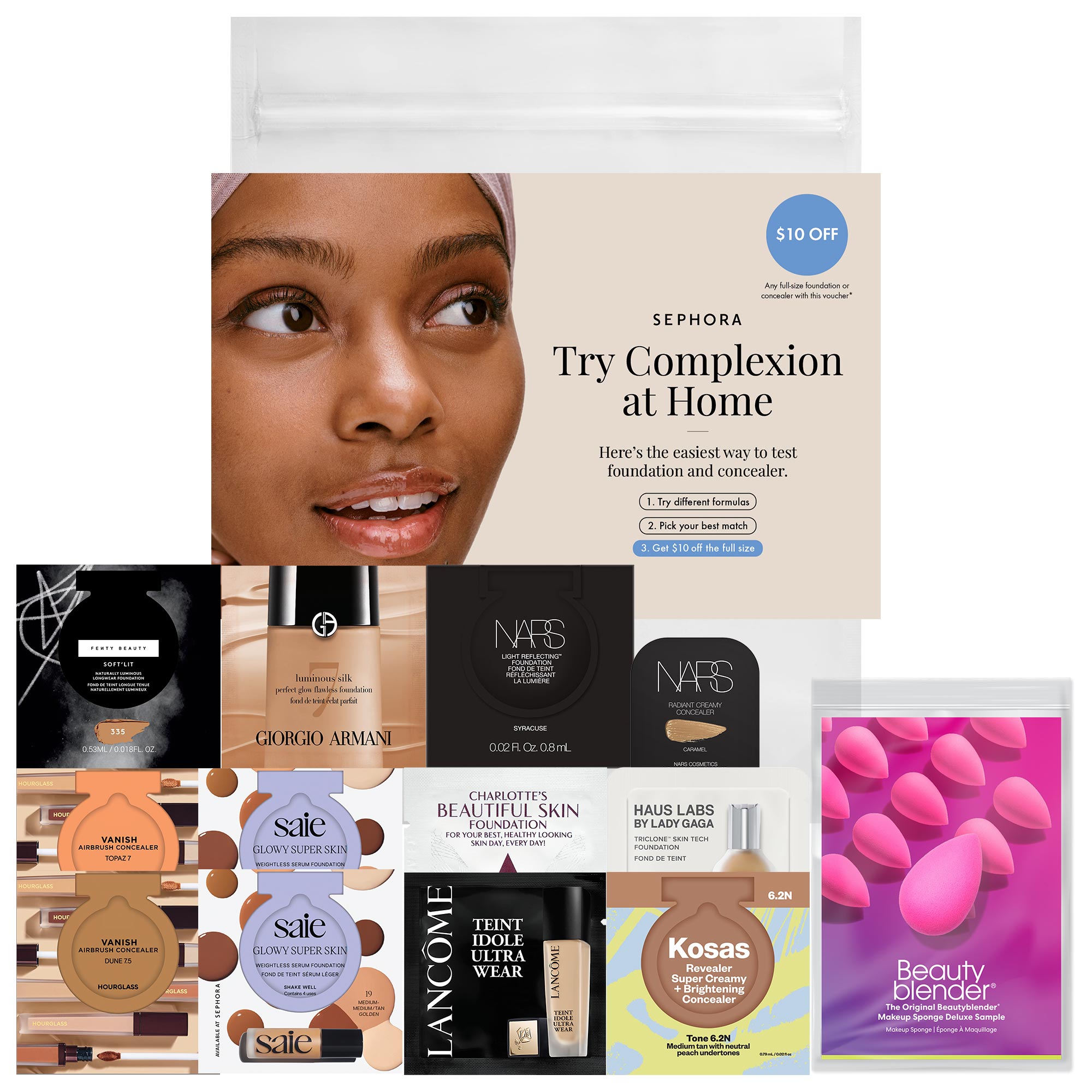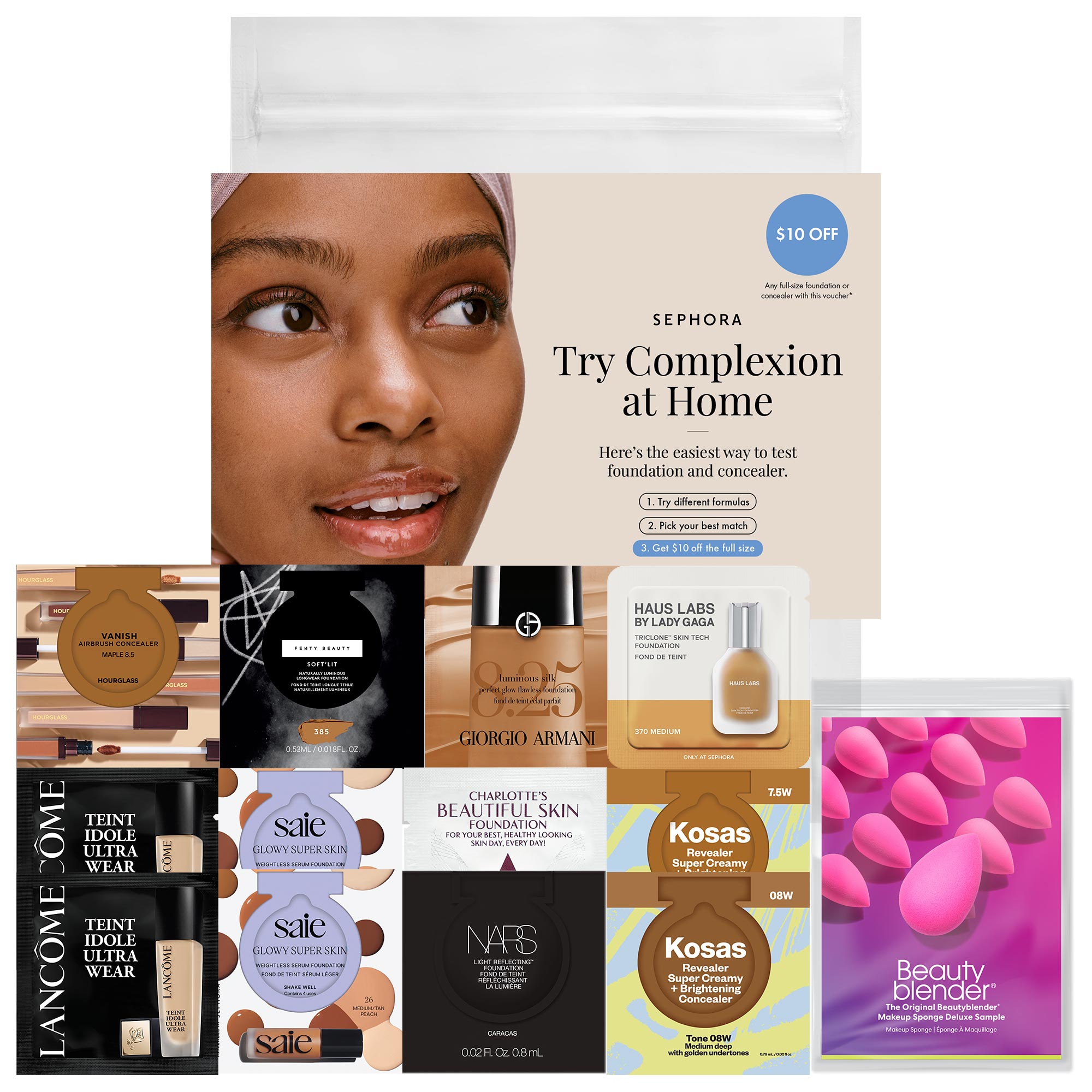 What Else You Need to Know: This set includes foundation and concealer samples in your shade range† to help you explore different formulas, coverages, and finishes. It also features a deluxe Original Beautyblender Makeup Sponge sample and a $10 off* voucher to use on any future purchase of a full-size-foundation, full-sized concealer, BB cream, CC cream, or tinted moisturizer at Sephora—even for brands not included in the set.