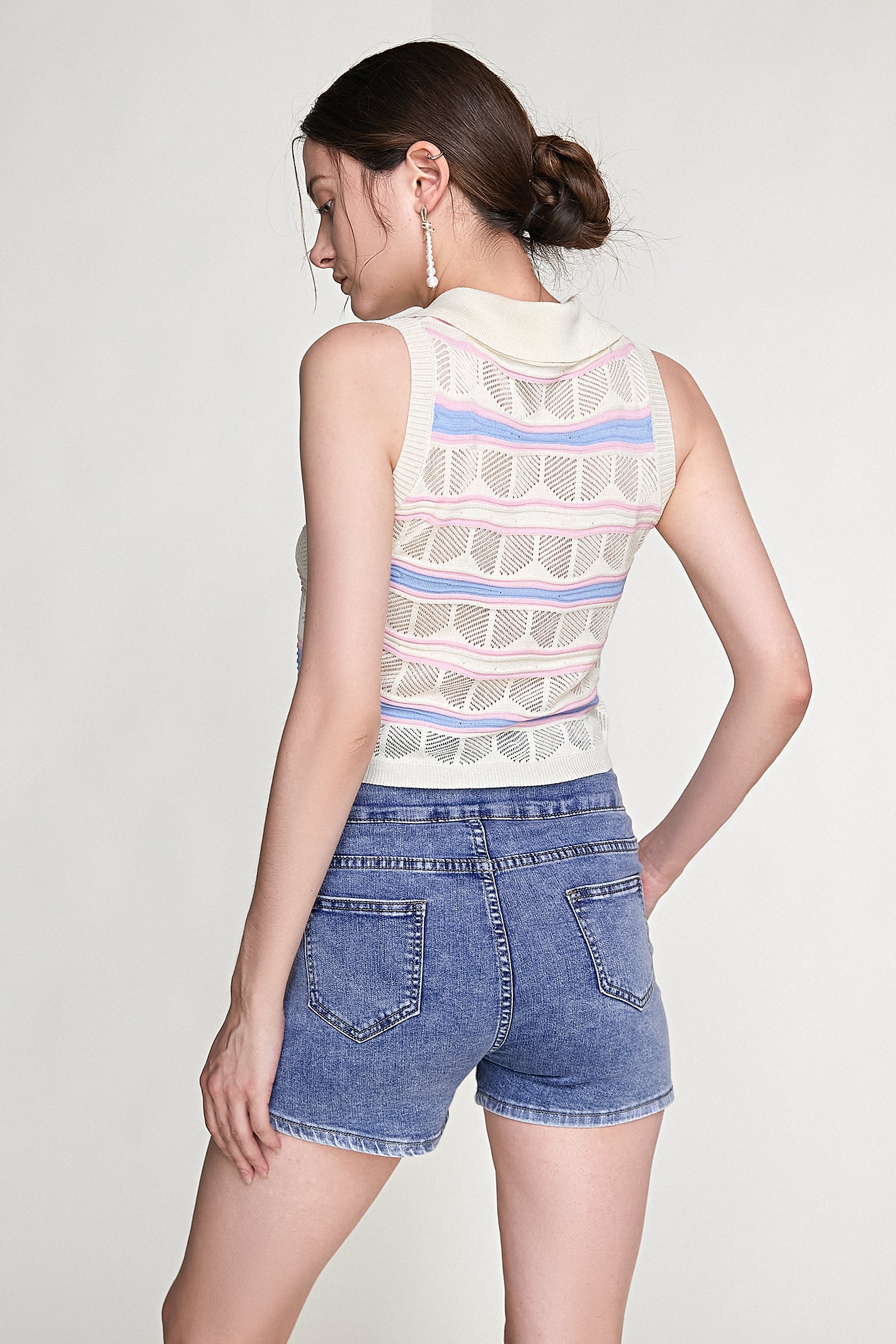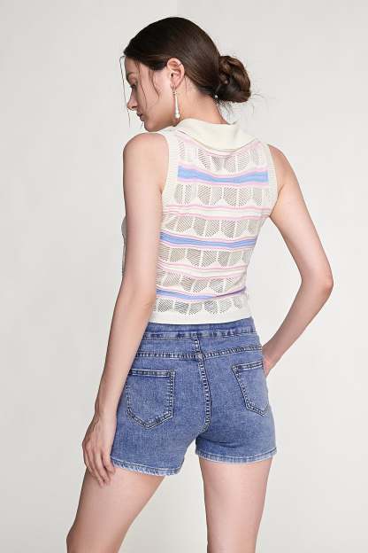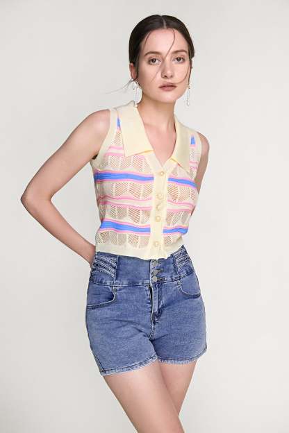 Level up your look for the new season with this vest. Featuring a soft knitted material with a striped detail, a button-up front, and a cropped length. Style with light wash jeans and your go-to heels for a brunch date with the girls.
