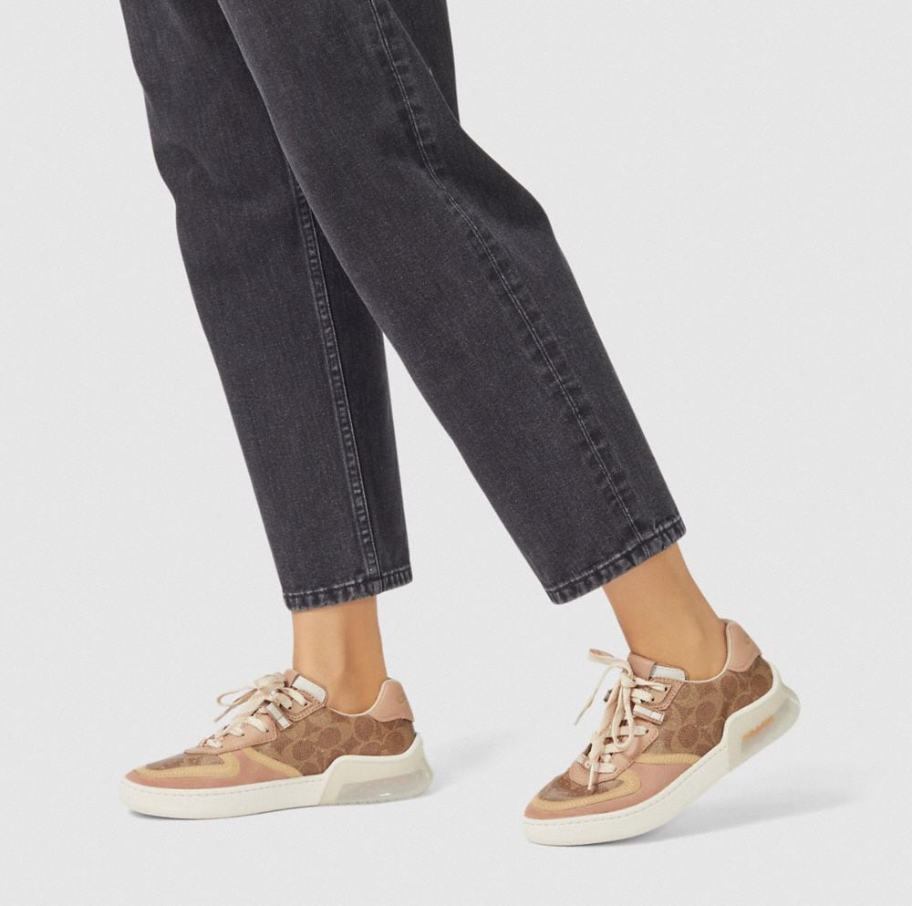 Signature coated canvas, suede and leather upper